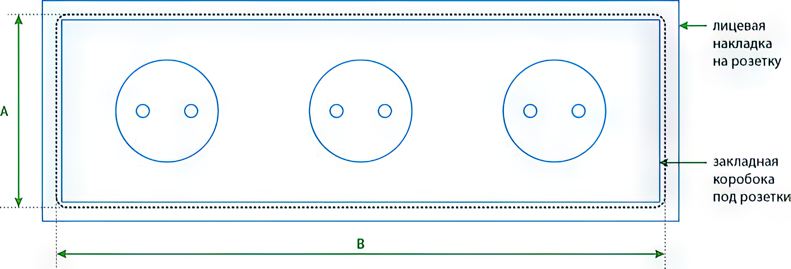 Определение формата выреза под розетки (A высота и B ширина) Рис 2.